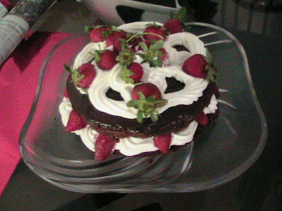 After all that grief n some major reconstruction surgery it turned out pretty amazing (i have only God to thank for pulling me out of that one!) - a 2 tier chocolate vegan cake with frosting & swirls in buttercream frosting n choc-dipped strawberries...yeah,baby,yeah...i lurve strawberries..they jus add soo much of color and easy charm to a cake